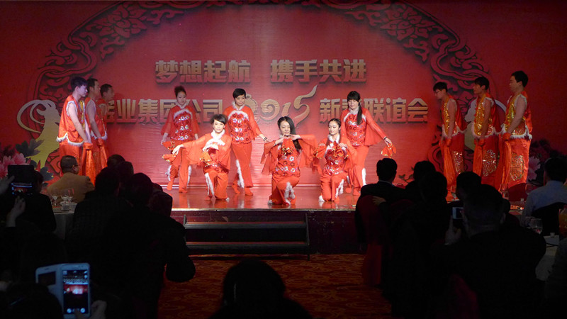 17點整,迎新春聯(lián)歡會正式開始,首先由房地產開發(fā)公司一支舞蹈《開門紅》拉開了晚會序幕,緊接著獨唱、詩歌朗誦、曲藝等節(jié)目精彩紛呈、高潮迭起,晚會在各分公司、各部門同事共同參與下將公司團結協(xié)作、多才多藝的精神和風貌展現(xiàn)的淋漓盡致。最后以公司譚副總經理一曲豪情萬丈的《祝酒歌》來開始我們團圓的酒會。公司大家庭歡聚一堂,其樂融融,為新的一年舉杯同慶,每個人臉上都洋溢著自豪與快樂。