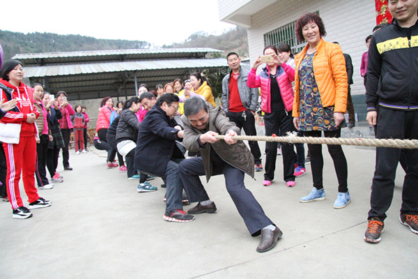 經(jīng)過稍許的休息后,在陳家溝農(nóng)家樂舉行了全體女員工單人跳繩比賽和拔河比賽。跳繩比賽規(guī)定每人用時一分鐘,在規(guī)定時間內(nèi)完成數(shù)量多者為勝。經(jīng)過近一個小時的激烈的角逐,田曉華、王紅、黃燕和單薇四人在幾十名女職工中脫穎而出,分別取得了第一、第二、第三的好成績。接著,在大家的熱烈掌聲中又開始了拔河比賽,比賽一共分為八組,各小組都顯示出勇奪第一的比賽氣勢。當(dāng)裁判的哨聲一響起,隊員們雙手緊握長繩,憋足了勁拼命往后拉,啦啦隊也在旁邊給隊員們加油鼓氣,恨不得抓起繩子跟隊員一起努力!加油聲、吶喊聲此起彼伏,一陣蓋過一陣。經(jīng)過激烈的耐力、體力較量,最終角逐了第一、二、三名,并為他們頒發(fā)了獎品。