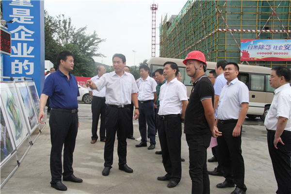 2019年8月14日上午八點半,在全國人大代表、陜西省安康市委副書記、市長趙俊民的帶領(lǐng)下,市區(qū)十多位相關(guān)部門領(lǐng)導(dǎo)來到寶業(yè)集團公司農(nóng)貿(mào)市場和倉儲物流園在建項目進行參觀指導(dǎo)工作,集團公司董事長張龍寶帶領(lǐng)倉儲物流園項目負責(zé)人汪軍總經(jīng)理、農(nóng)貿(mào)市場負責(zé)人馬龍總經(jīng)理及相關(guān)工作人員熱情接待。