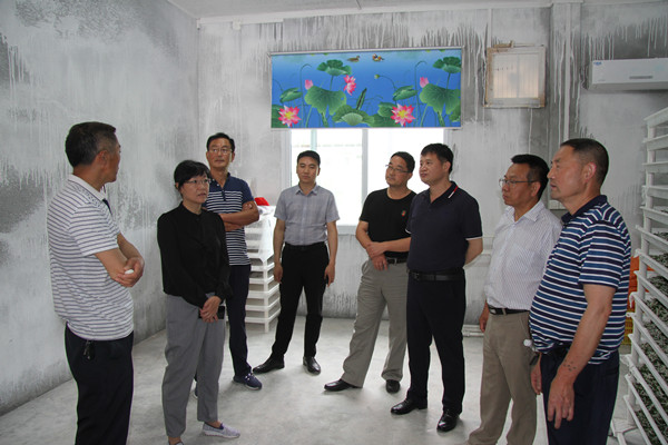 隨后一行人又前往寶業(yè)公司扶貧基地麻廟村進行察看,首先察看了500畝桑園,桑園長勢一片大好,為春蠶的飼養(yǎng)提供有力保障。然后來到合作社養(yǎng)蠶工廠查看春蠶飼養(yǎng)情況,第一批已吐絲結(jié)繭即將下架,同時查看了寶業(yè)公司為合作社扶持的現(xiàn)代化蠶具設(shè)備,對寶業(yè)公司為麻廟村的高要求,高起點的產(chǎn)業(yè)扶持給予肯定。